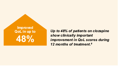 Clinical data in patients with TRS followed-up for 12 months show that clozapine significantly improves the total score and all 21 item scores of the quality of life scale (QLS).1
